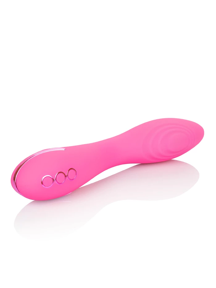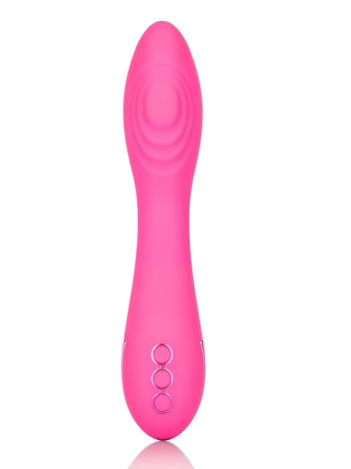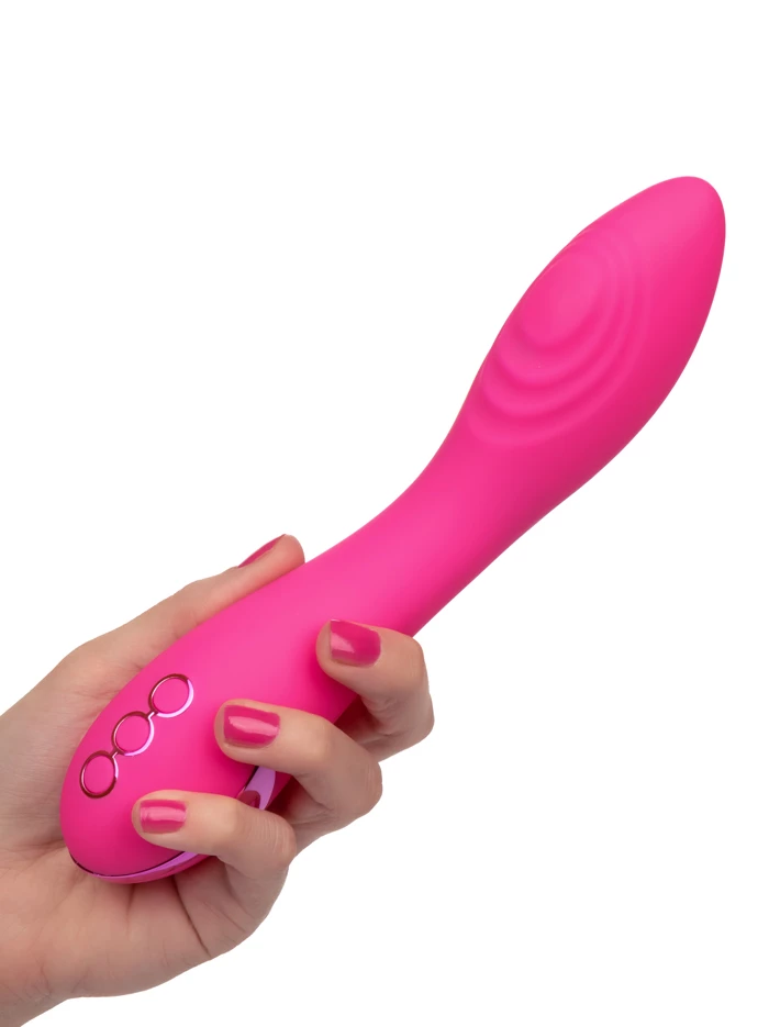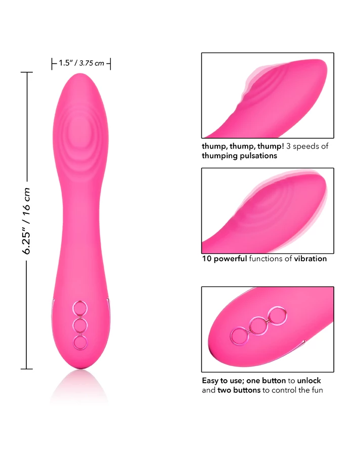 Ready for insertion, external play, or whatever pleases you, this wand-shaped waterproof vibrator provides thumping sensations that are terrific for stimulating the g-spot or anywhere externally. The smooth body of the vibrator ends in a bulbous tip equipped with a pad that offers up to three speeds of thumping pulsation. Enjoy ten separate functions, plus a Power Boost that takes you directly to the highest level. Control your experience with three-button controls: the top button turns vibe on and off, the middle allows you to scroll through functions while the bottom button brings you right to the Power Boost. Surf City Centerfold’s smart memory chip resumes on the last setting used. USB rechargeable with self-sealing port and charging cord included.