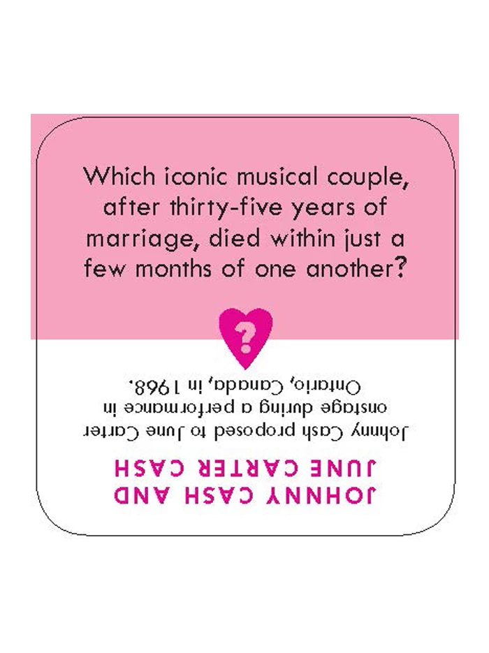 We all know love isn’t trivial–but this game of love trivia, with questions drawn from pop culture, history, science and literature, is a delightful diversion for couples, dinner parties, bachelorette entertainment, or any gathering of people looking for a lighthearted question game. Perfect for cozying up with a sweetheart or sharing at a girls night out, it can be played by any group of people as the questions are focused on love and romance rather than being explicit. 50 cards come in a cute portable tin – great for a weekend getaway, travel or tucking away to spice up an evening.