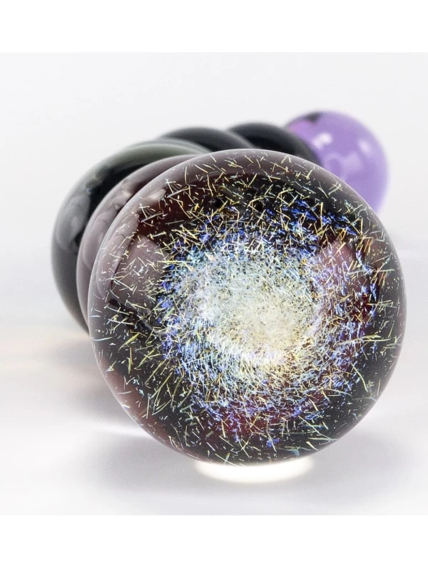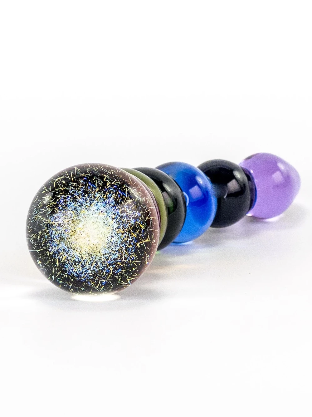 The Rainbow Bubble Dildo features a rainbow spectrum-colored curve of glass finished with a glittery dichroic bulb at the large end. Each bubble tapers in size making this a sensation-filled textured dildo. The gentle curve fits well in the hand and the bumps allow you to grip the smooth glass while also offering an ongoing “first penetration” feeling. The Rainbow Bubble’s curve was made for G-Spot or A-Spot stimulation too. It will dazzle the senses as it goes from cold to hot during masturbation or during coupled sex. Leave this prism dildo on your windowsill for easy reach and to ogle as light shines through each color until the next play session.