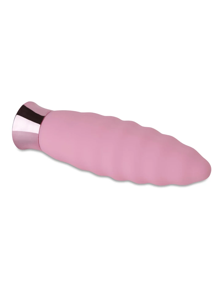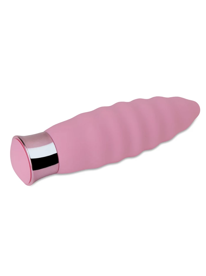 Enjoy sky-high portable pleasures with this soft, cushy silicone vibrator! Tapered and oblong, Celeste’s shape is enhanced with ripples for more sensation. The squishy-soft tip is perfect for pinpoint play–its petite shape lends itself to external clitoral stimulation as well as pleasuring the vaginal opening, with three intensity levels and seven modes so you can explore varying levels of pleasure. Just hold the one-touch control button located at the base for three seconds to turn on/off or scroll through all ten pleasure options. Waterproof and USB rechargeable; look for the self-sealing charging point, located on Celeste’s side between the CE and “no garbage” icons. (Insert so that the charging pin goes all the way in.)