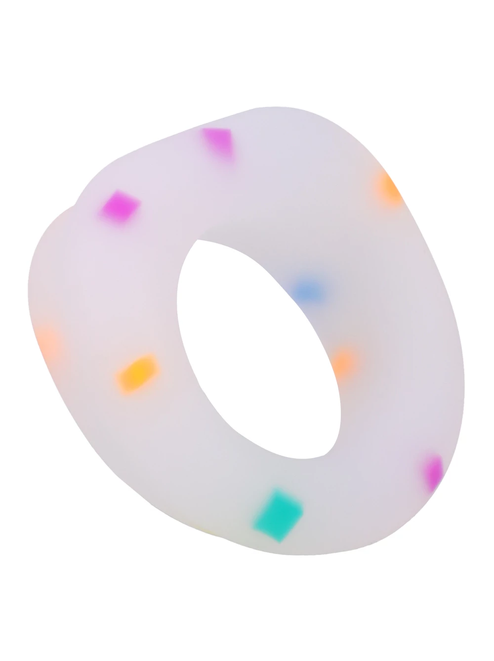 It’s a party for your penis! A confetti carnival! The fun never ends with the Confetti Cock Ring. Clear silicone with yellow, blue, purple, and pink confetti inside. Stretches up to 4 inches (unstretched internal diameter is 1 3/8”) with a tapered height that ranges from ½” to ¾” Pair with the Gala Confetti Mini Anal Plug for a festive gift idea for someone special (or yourself)!