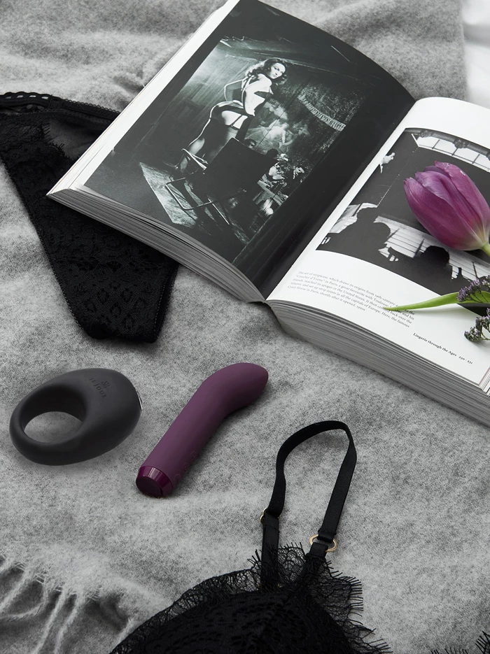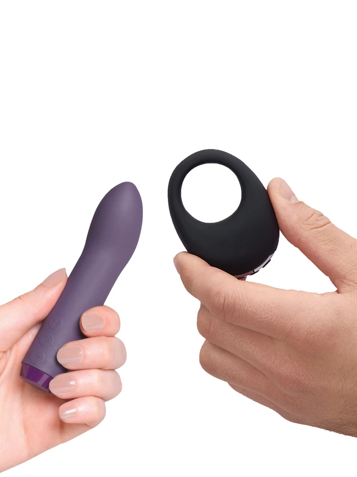 Je Joue’s limited edition gift box, which combines two of their best-selling desirables: a purple G-spot bullet and a black Mio ring, packaged in a gorgeous silver-on-black feather-decorated designer box. It’s a perfect selection of items for a couple looking to try out all the ways vibration can add to their sex play–and at just over 20% savings!