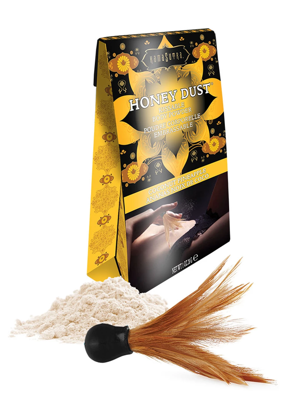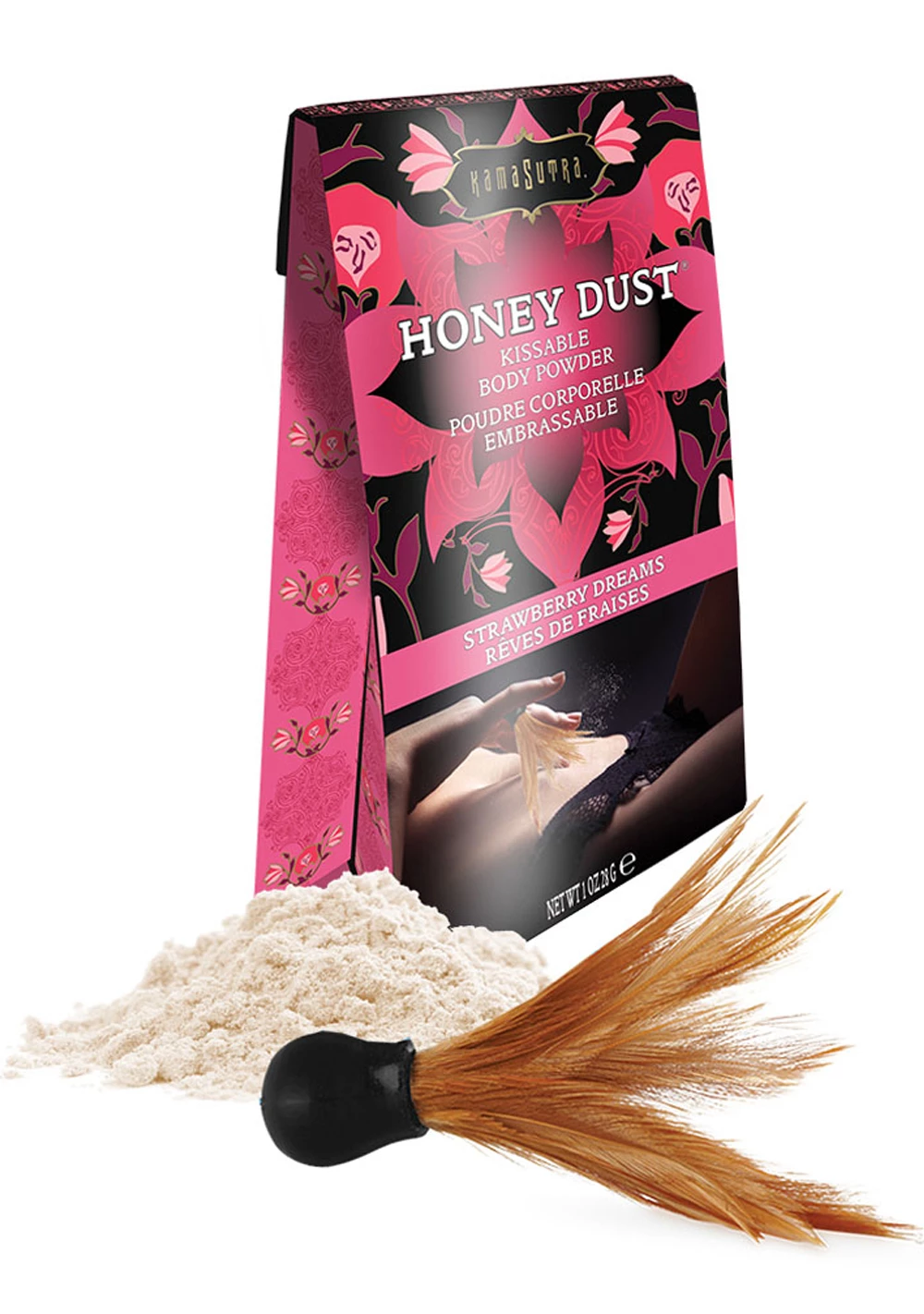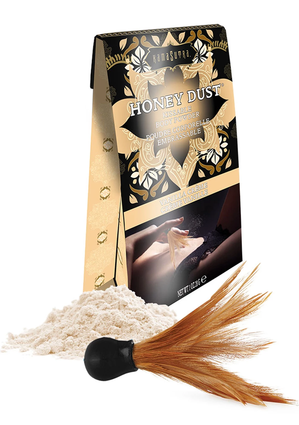 Kissable, moisture-wicking Kama Sutra body powder that leaves skin silky-soft and delicately scented. Includes a sexy feather applicator. Talc free.