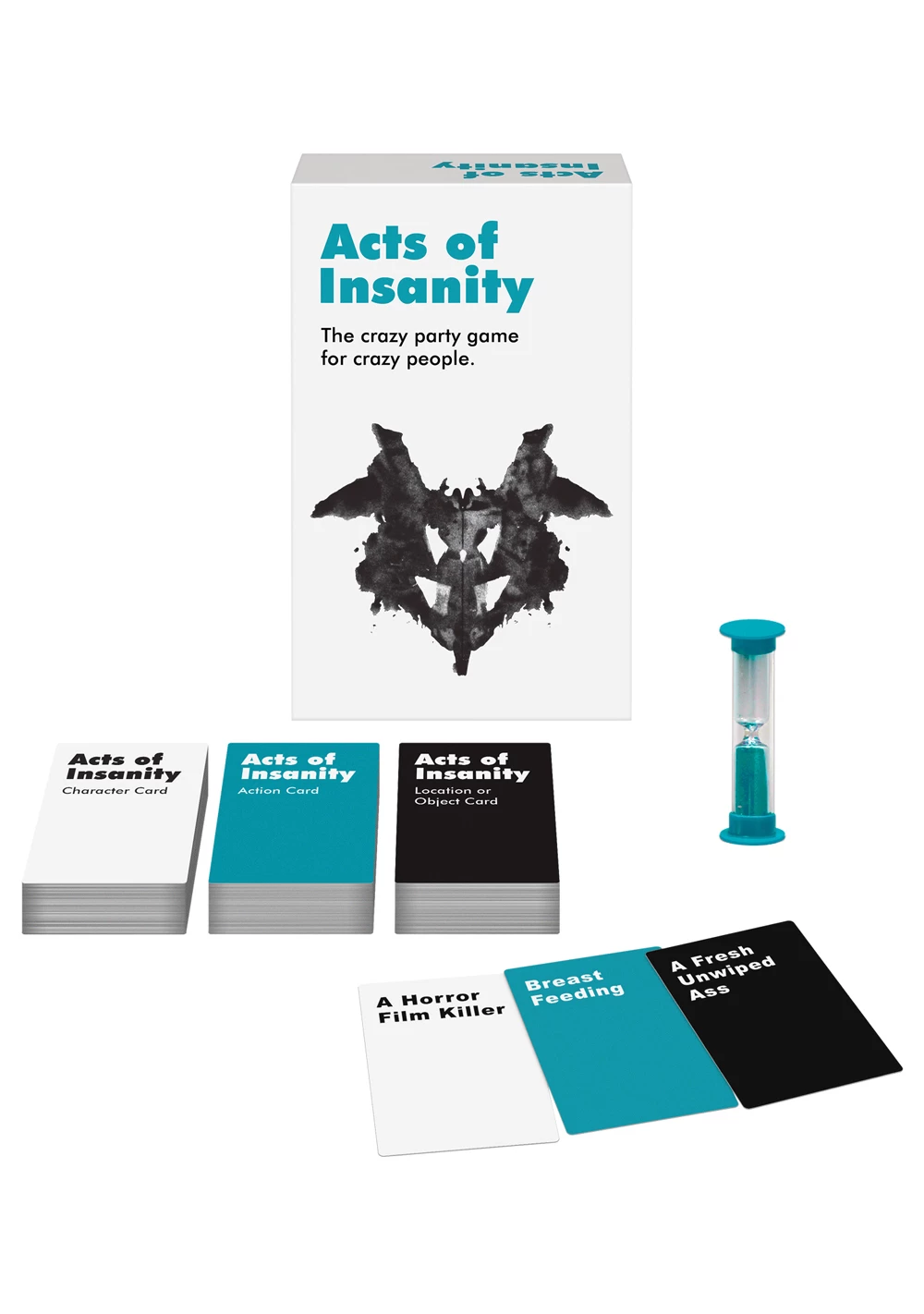 The crazy party game for crazy people! The raunchy party game where you act out adult scenarios for your team to guess. The opposing team reviews 5 of each game card type and assigns you a Character Card, Action Card, and Location or Object Card. You then have two minutes to act it out for your team. Game Includes: 108 Character Cards, 108 Action Cards, 108 Location or Object Cards, a 2-Minute Timer, and Game Instructions. For 4-12 players.