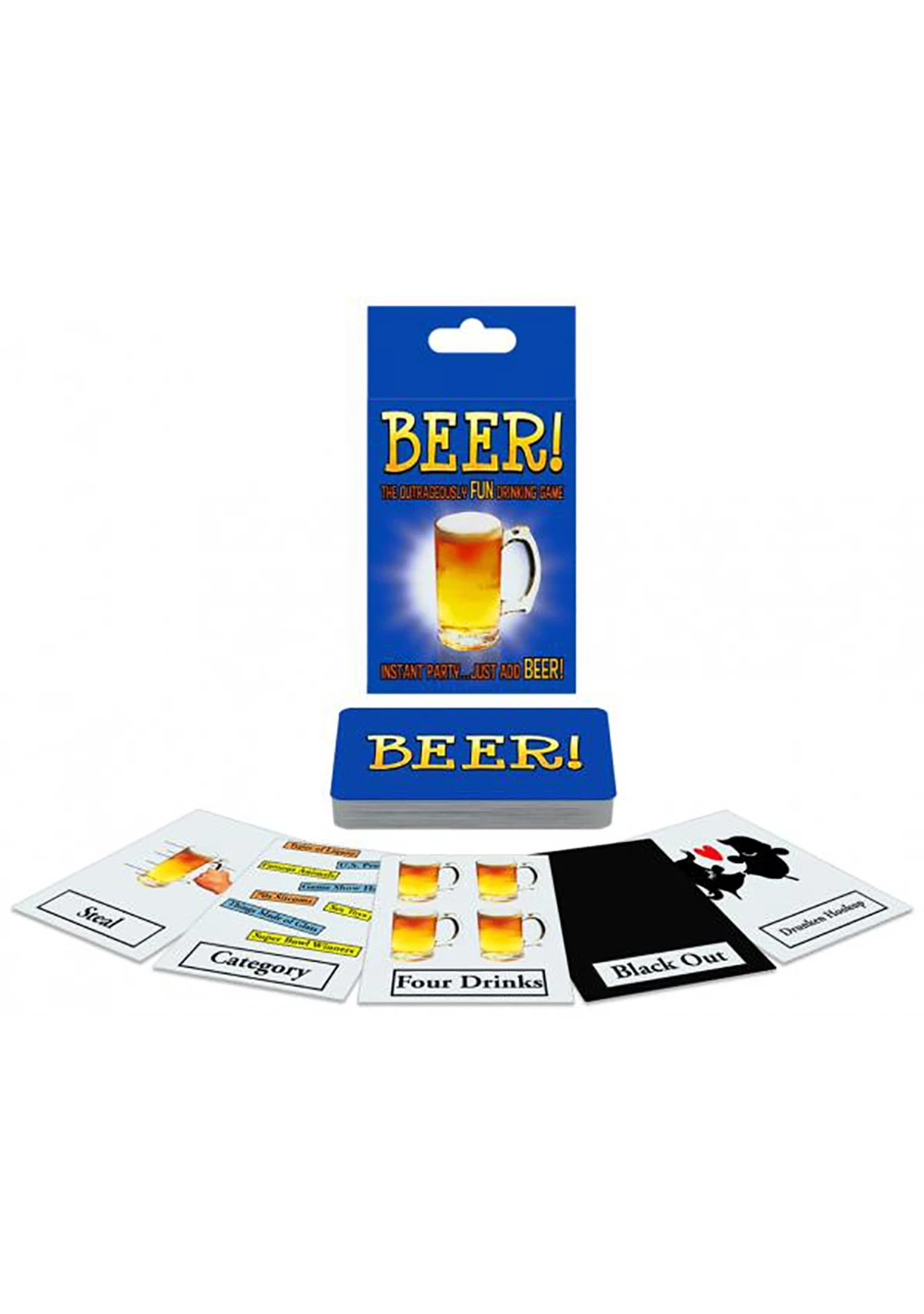 The hilarious card game where you assign drinks, steal from others, have blackouts, and even an occasional drunken hookup. BEER! also tests your knowledge of crazy categories like Types of Liquor, Cartoon Dogs, and Excuses for Not Making Love. If you win, you get to assign LOTS of drinks to the other players.