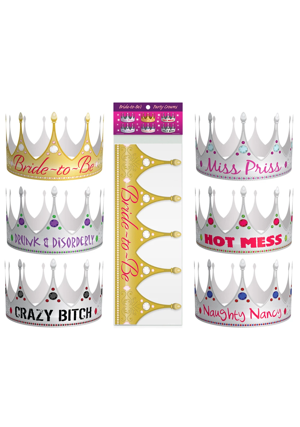 The Bride-to-Be puts on her designated crown and assigns each of the other 5 out to her friends however she sees fit. She may reassign the other crowns at any time throughout the party. Crowns are adjustable and fit most heads.