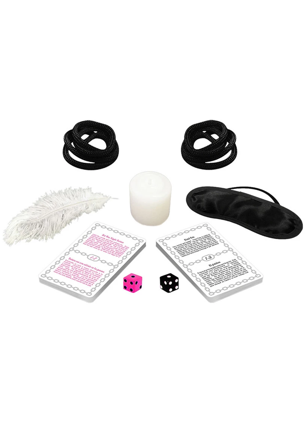 Curiously explore the world of fetish with your lover. Would you like to experiment with sploshing, a foot fetish or hot wax play? Find out! Safely explore the curious world of fetishes with this kit. Play as a game or simply use one card for each adventure. Cards and game rules are translated in English, Spanish, German and French.