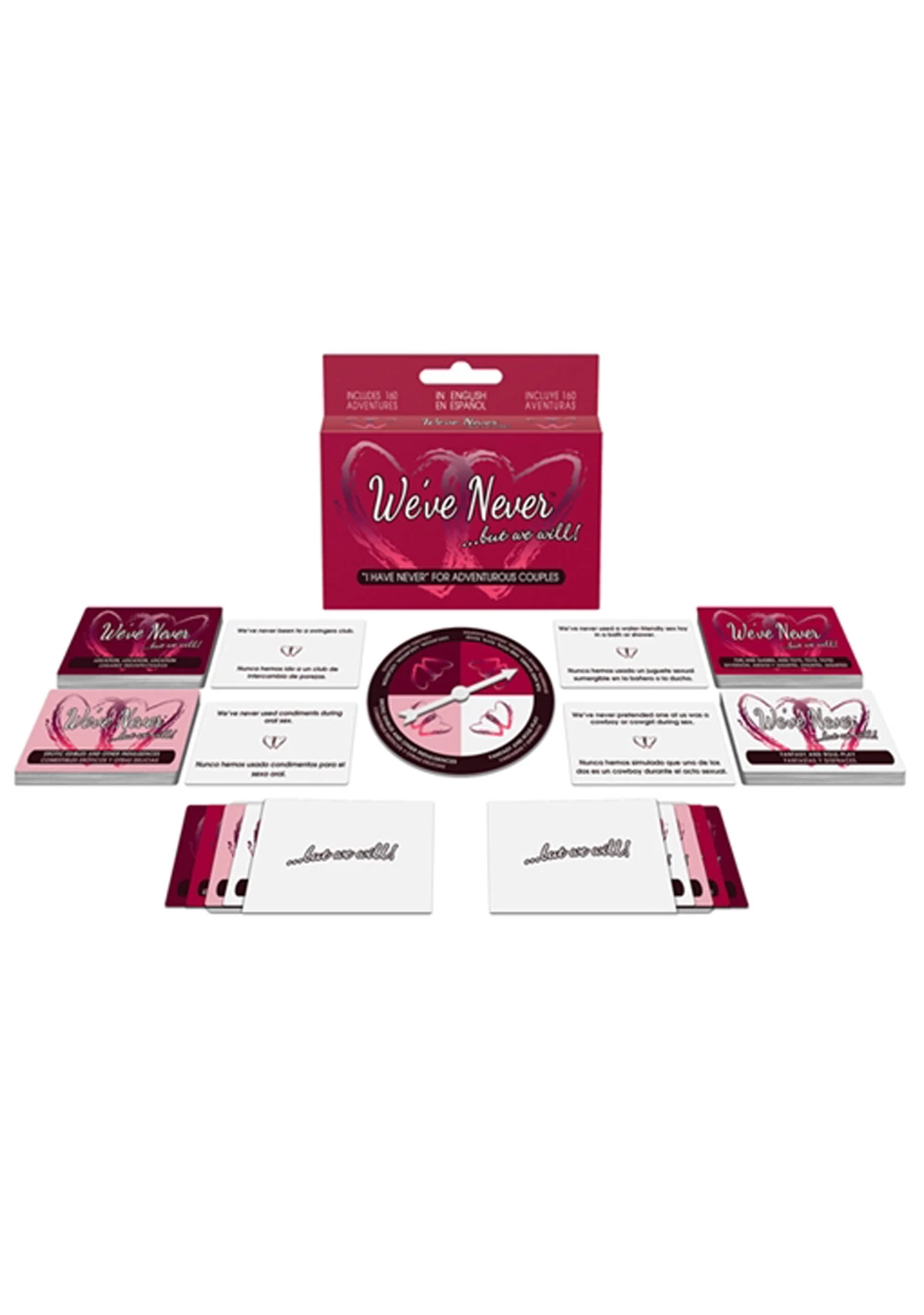 Hours and weeks of adult fun await! A couple reads the We’ve Never cards to each other, and celebrates what have done together. If they have not done the sexual activity on the card, but decide they would like to, they save the card and toast to the adventure. Play with your favorite adult beverages and simply build up a collection of new sexual encounters, and celebrate your love life!