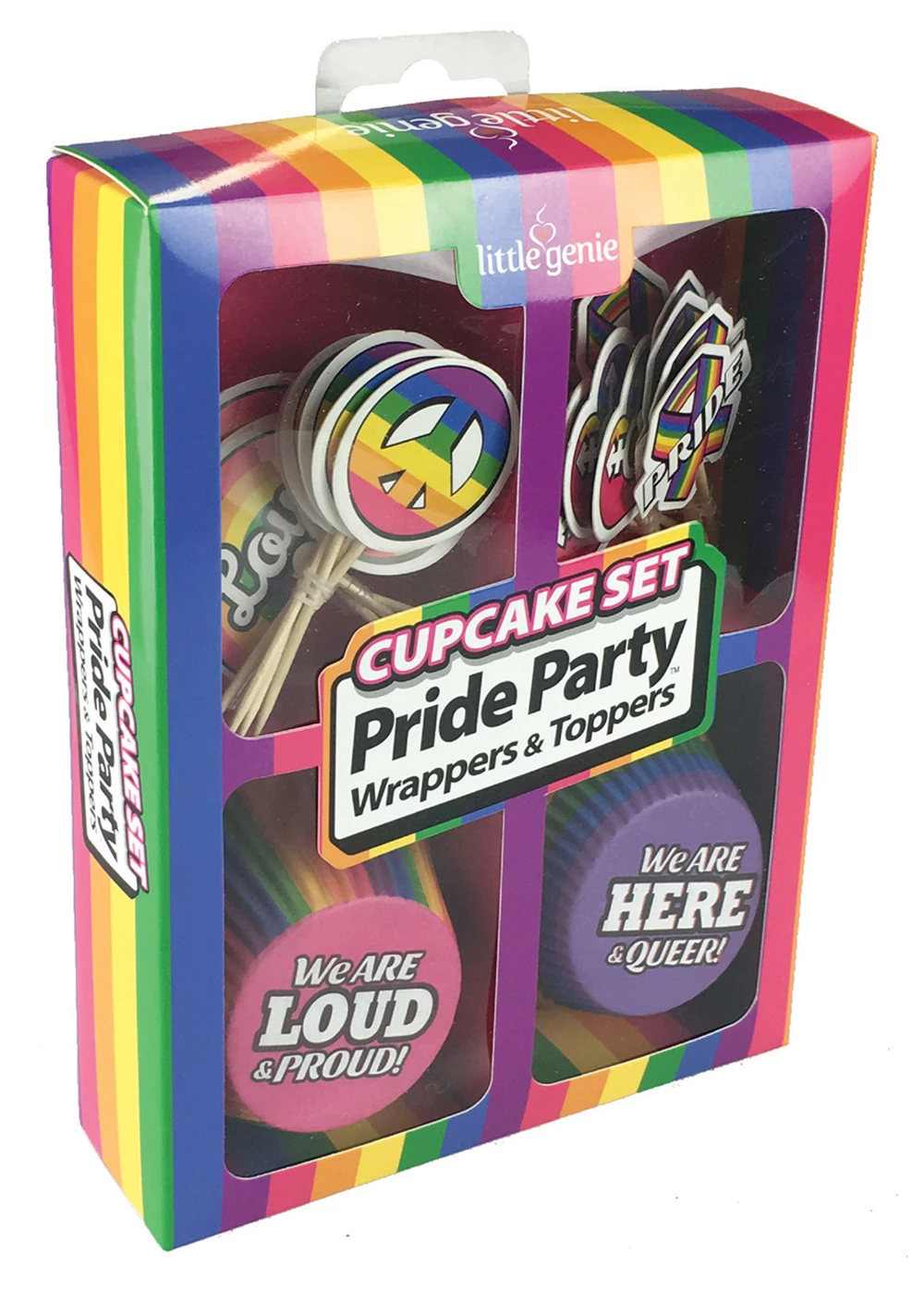 We are Loud and Proud! We are HERE and Queer! Embrace Pride and your sexual freedom and identity with this Cup Cake decoration set. This rainbow decorating set is certain to make your party treats look festive and delicious! 24 wrappers, and LGBT themed toothpick toppers (24 total, 6 each of 4 designs).