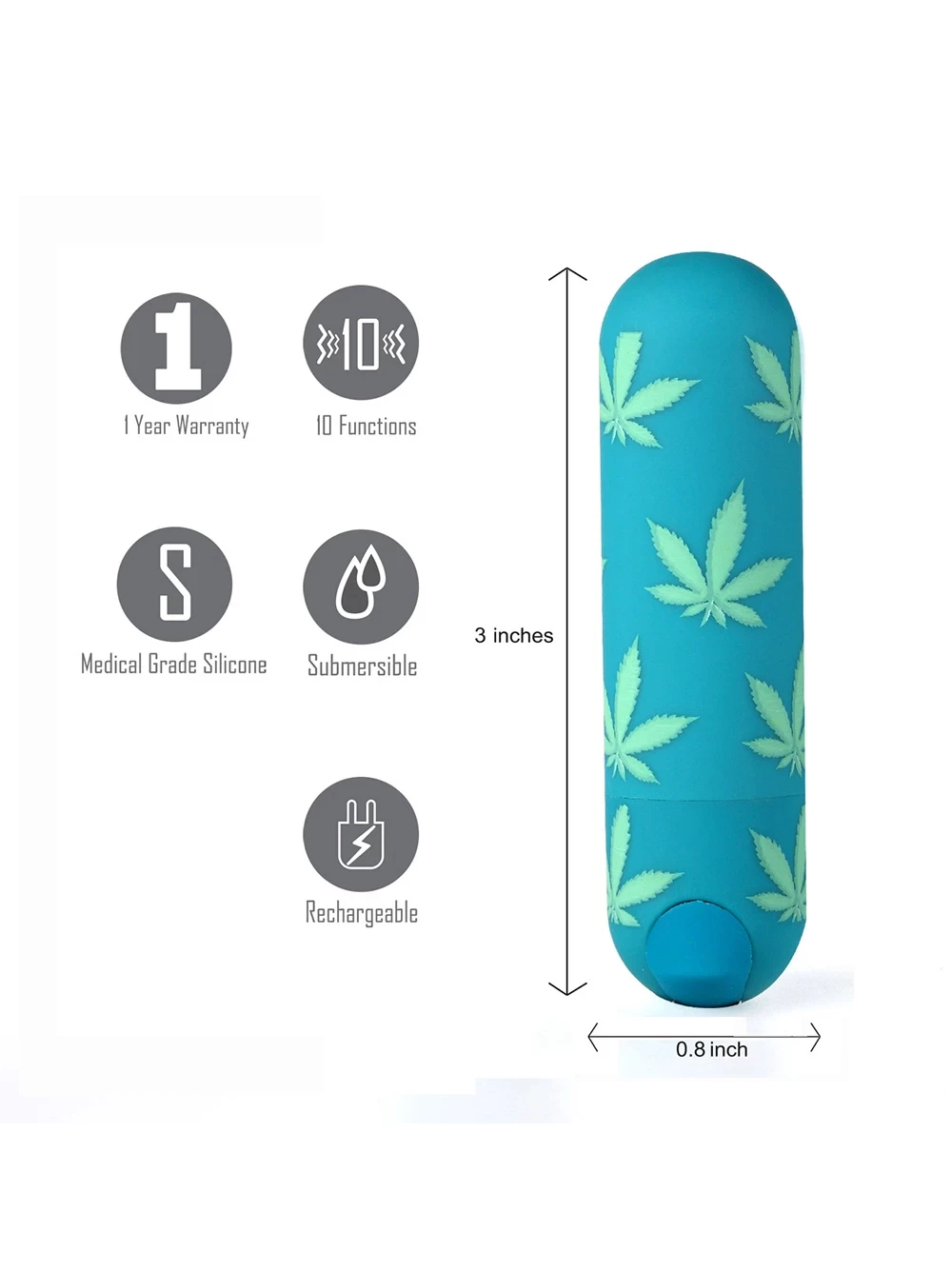It’s time for you to meet the latest bullet vibe getting all the buzz. The rechargeable Jessi 420 bullet is here to remind you that no matter what time it is, it’s always ‘relax-o’clock’ when the mood strikes. This compact massager is great for use in dildos, harnesses or as a super-portable handheld pleasure device. The miniature Jessi rechargeable bullet features 10 speeds of pulsating vibration to help you get your groove on. Its playful design and powerful motor make this an excellent gift for a friend or a delightful addition to your own toy stash. Featuring single-button control, you can charge it up via USB. Waterproof and submersible; keep this vibe clean with mild soap and water. To turn on/off – hold button for 3 seconds. When light stops flashing, the bullet is fully charged and ready to go. Do not expose power button or pull back silicone charging port.