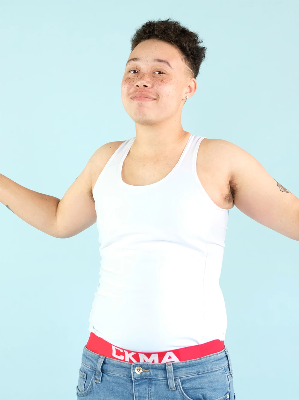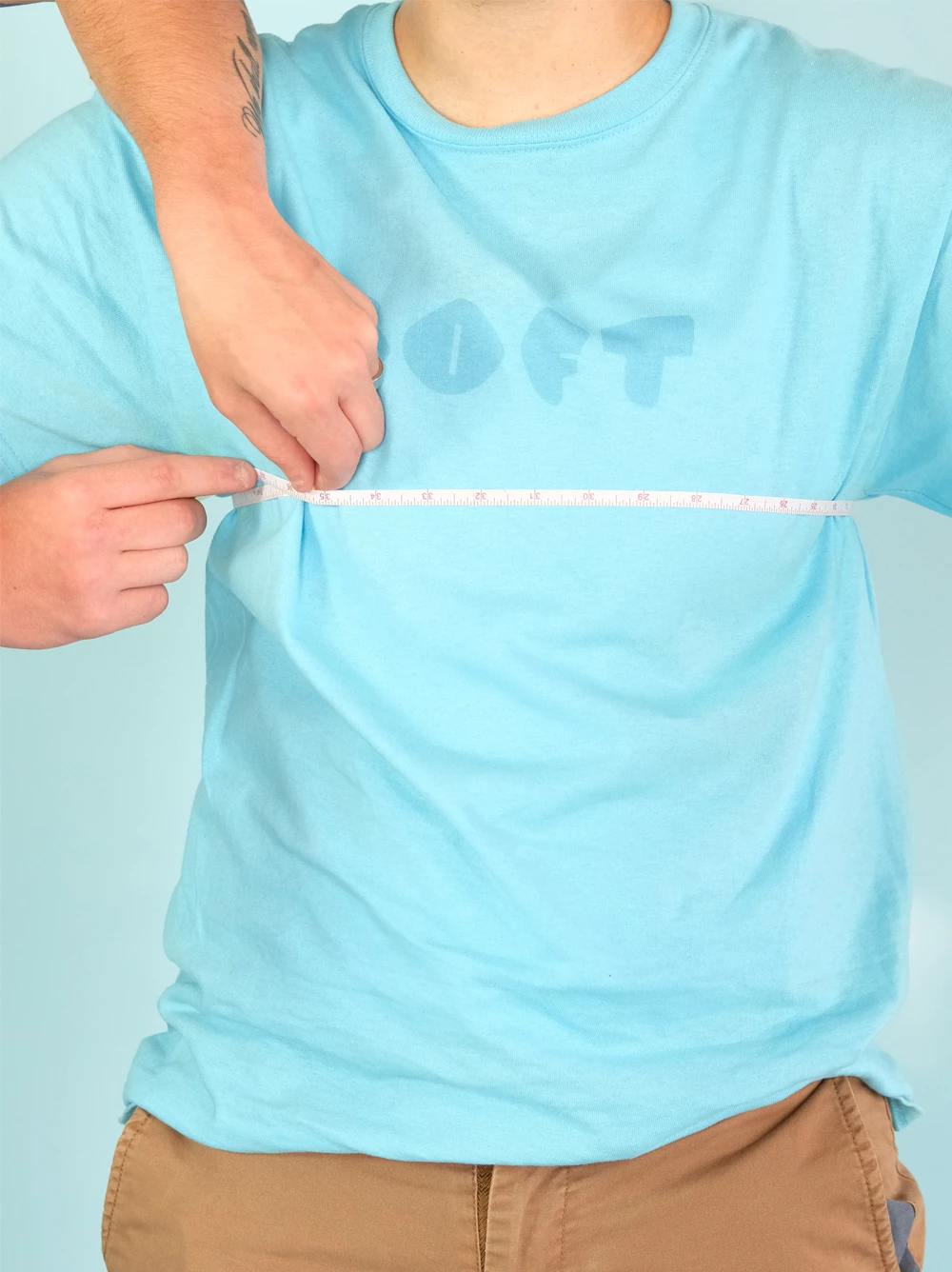 To find your size, use a tape measure *alternatively, you can use string and a ruler*. (1) Wrap the tape measure under your armpits above the breast tissue. (2) Wrap the tape measure around your body at the point where you experience the maximum breast tissue. The average of these two measurements is your binder size *{(1) + (2)} / 2*. Round up for looser fit, round down for a more snug fit. Many folks find they wear one size smaller on our size charts than other binder brands.