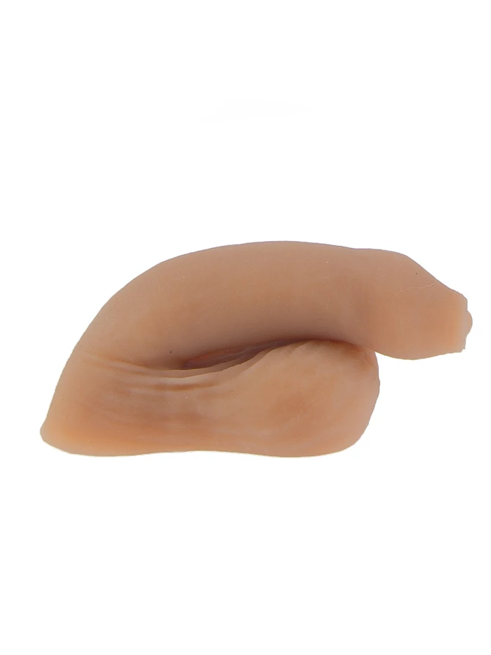 This handmade packer offers incredible realism and comfort and is perfect for any wearer who wants to sport an intact silhouette in their packing pouch or packing strap. Pierre features over 100 unique skinfolds throughout the shaft and testicles adding to the realistic look and feel of this packer. Available in a range of tones and made with a realistic-looking but un-retractable uncircumcised foreskin. We’ve found that packers worn in tight undies or packing garments last longer than packers worn in traditional packing straps. Pressure on the point where the shaft and balls meet can reduce the lifespan of your packer no matter which material the packer is made of. Perfect for folks on gender masculine spectrum who are looking for a packer that suits them!