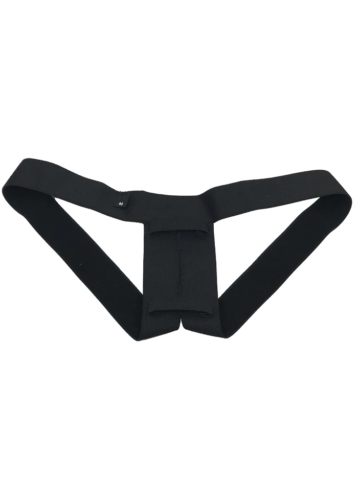If you’re sporting a Sam STP, Archer or Pierre Packer, this comfy plush elastic packing strap, designed specifically to be worn with NYTC packers, will help you get the most out of your selection. Two small silicone-backed elastic straps secure the shaft of your STP or packer in either an “up” or “down” position; the packing strap goes around each of the wearer’s thighs and holds the STP or packer, which is secured though the strap. (The opening in the packing strap should be able to accommodate any STP or packer with a shaft up to 1.5″ in diameter.) The unique loop design allows the user to securely pack higher or lower on the body, with more control over the size and look of the packer’s bulge. This two-leg-strap style is different than the classic jockstrap; these straps only go around the thighs. Fits under any garment and can be work with boxers or nothing at all! Hand wash cold, then hang dry.
