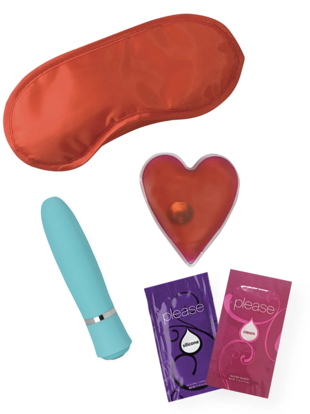 Set the scene for a perfect night (or morning!) with the Perfect Pleasures Kit! Kit includes our best-selling Pleasurette, a petite vibe that’s perfect for both beginners and experienced vibe users—the waterproof Pleasurette is seamless and features a light-touch push-button control on the base — cycling through the three speeds is super-easy whether you’re keeping it all to yourself or sharing the fun with a special someone. The Pleasurette is battery-operated and requires a single AAA battery (not included).