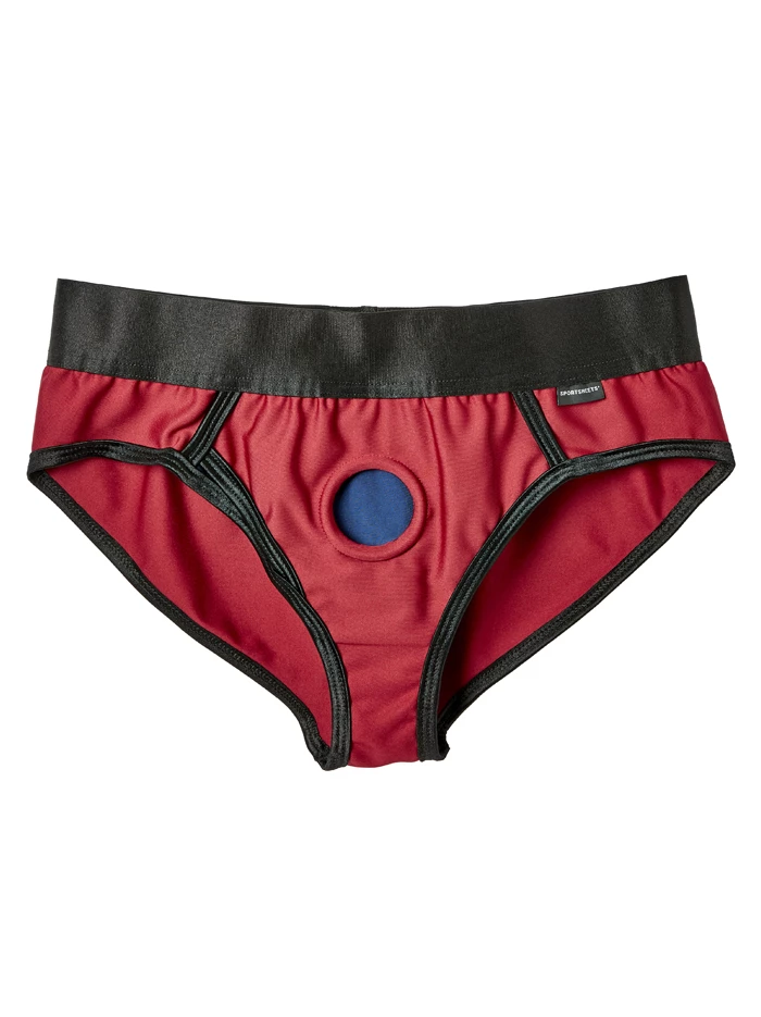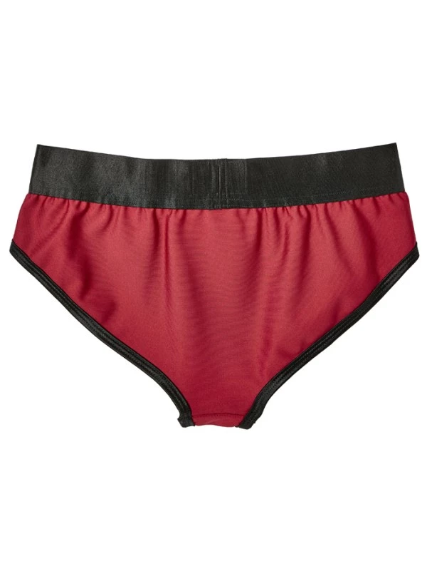 For pegging, packing, or any kind of strap-on play, choose a comfy slip-on harness crafted from soft, stretchy fabric. Styled like classic briefs and suitable for all-day wear, Contour is designed to be accessible and flattering to people of all genders and identities. With a design that features two internal bullet pockets, you can add vibration and stimulate both wearer and partner if desired, plus handy interior fabric panels secure toys in place while providing extra support during use. Contour’s fitted design is attractive and comfortable, featuring lightweight, moisture-wicking, breathable material with a durable elastic waistband. Hand wash, hang dry—it’s very easy to care for. The O-ring diameter is 1.5” so it will fit a range of dildos. Comes with travel pouch; with no metal parts, this harness is a great choice for sliding through TSA!