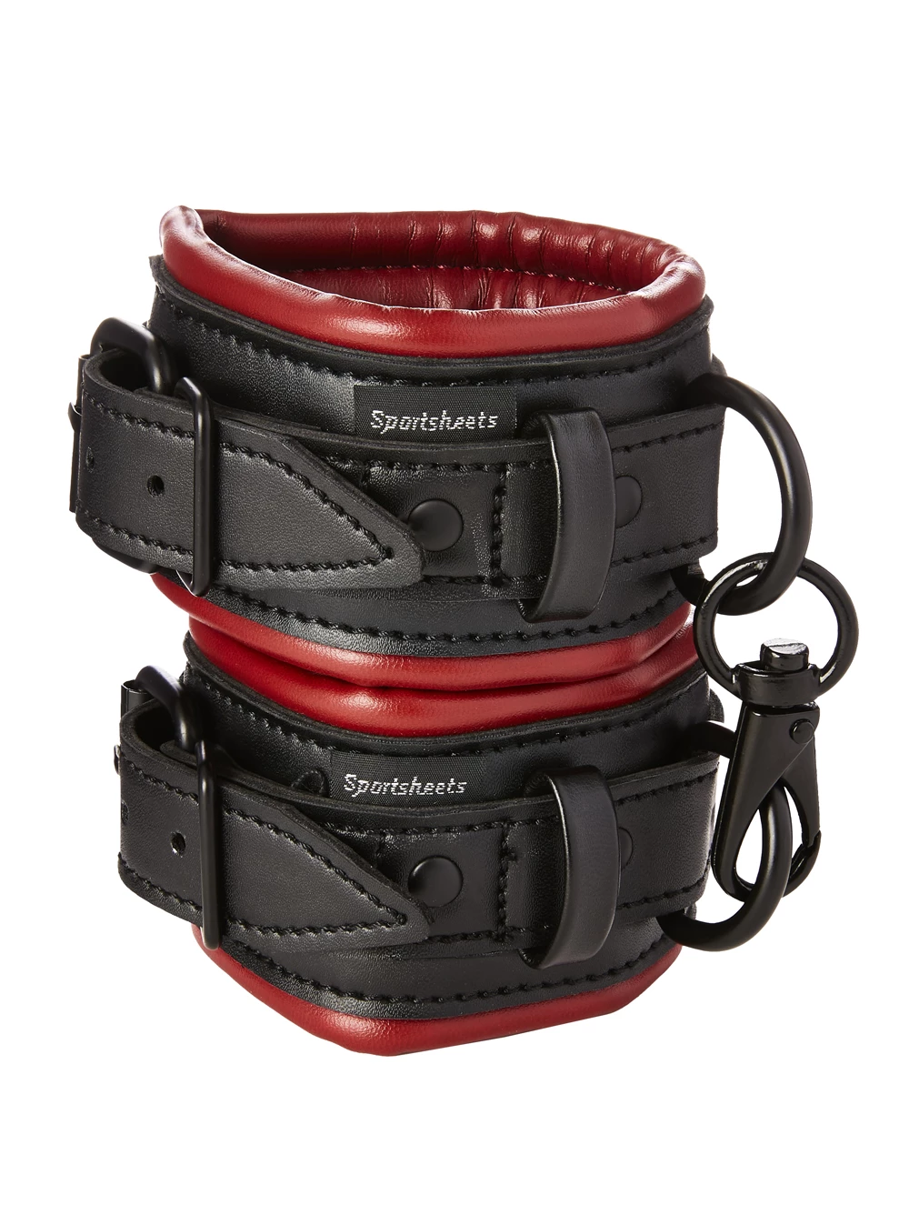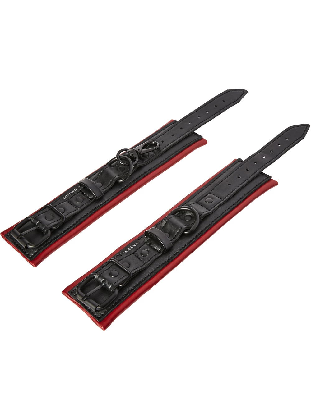 Activate your sinister side with these red hot Saffron Wrist Restraints! Scarlet mixed with a dark midnight elevate these vegan leather cuffs to an iconic level; ready for evenings full of debauchery and indulgence. These heavy-duty wrist restraints have soft inner lining that make for comfortable seduction while you play with power, punishment, and pleasure. Link the cuffs together like a standard set of restraints, or separate them and combine with a spreader bar, chains, or any other of your established BDSM accessories. These restraints are durable and secure so you know that your plaything will be fully captivated and ready to submit. Consent and communication are key in power play and we recommend establishing clear guidelines before you begin.