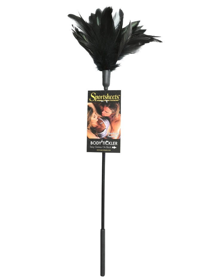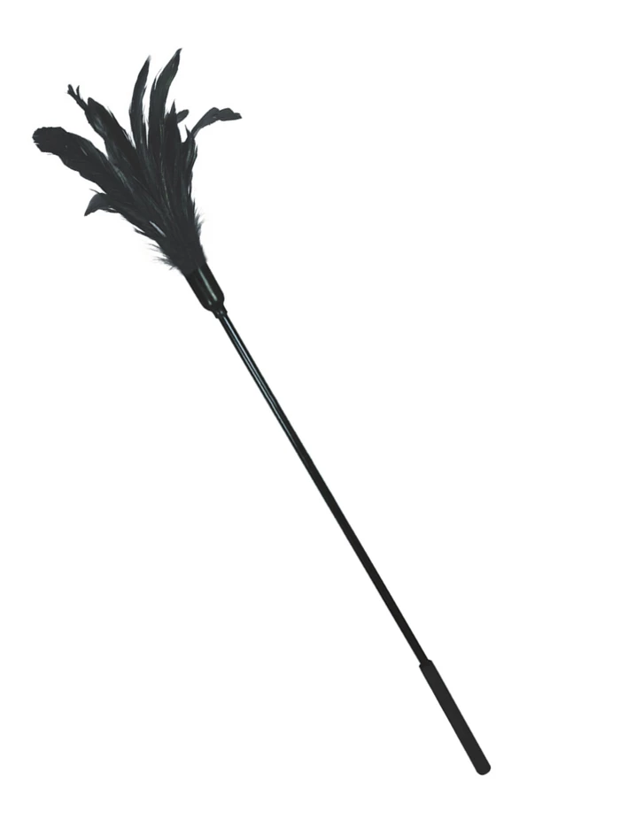 Exploring sensation play doesn’t have to mean pain — delight to the subtle sensuality of soft feathers and the excruciating pleasure of tickle play. Six inches of feathers top the slightly flexible 15” black plastic wand. Wake up every nerve and stimulate your skin to new heights of sensitivity with this teasing, tantalizing toy.