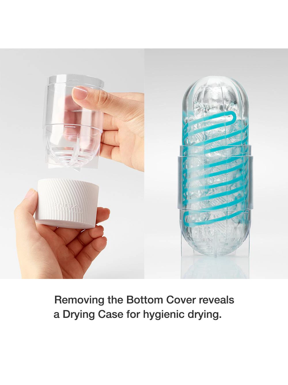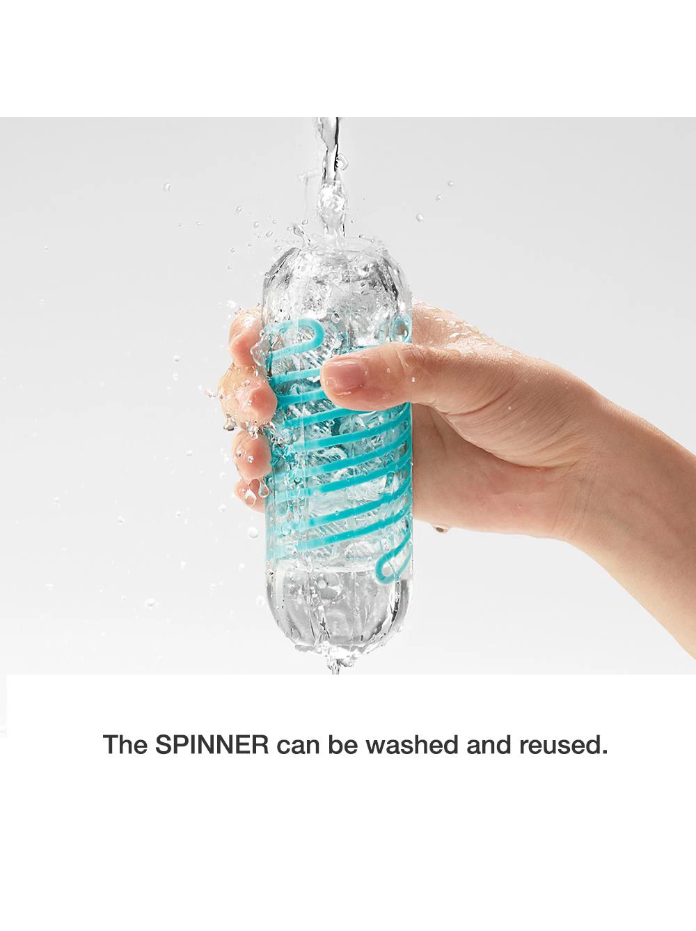 The innovative Tenga has reinvented the insertive sex toy game (once again!) with their new Spinner sleeves, which incorporate a revolutionary new ‘spiral motion’ design. When a penis is inserted into their Spinner sleeve, the internal canal corkscrews around the shaft with every in and out, twisting as you thrust and creating unbelievable sensations. With no external shell, you control the pressure. Tighten your grip for more intensity, or relax for a subtle ride that’ll still send thrills up your shaft! Add lubricant for even more sensation–a lube starter packet is included. This reusable sleeve is easy to clean and maintain. Once fully unpackaged, the bottom cover reveals a drying rack that helps provide hygienic storage after cleaning. Great for solo or partnered play!