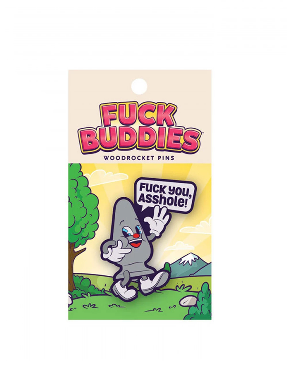 This funny and colorful soft enamel lapel pin by Wood Rocket is the perfect novelty apparel accessory. This adorable enamel pin features a butt plug saying “Fuck You, Asshole!” and is one of WoodRocket’s silly and cute and filthy-mouthed sex toys in its Fuck Buddies Pin collection and is just the right amount of dirty to wear in public. Stick it on a hat or clothes or backpack or bag or purse it or give it as a gift!