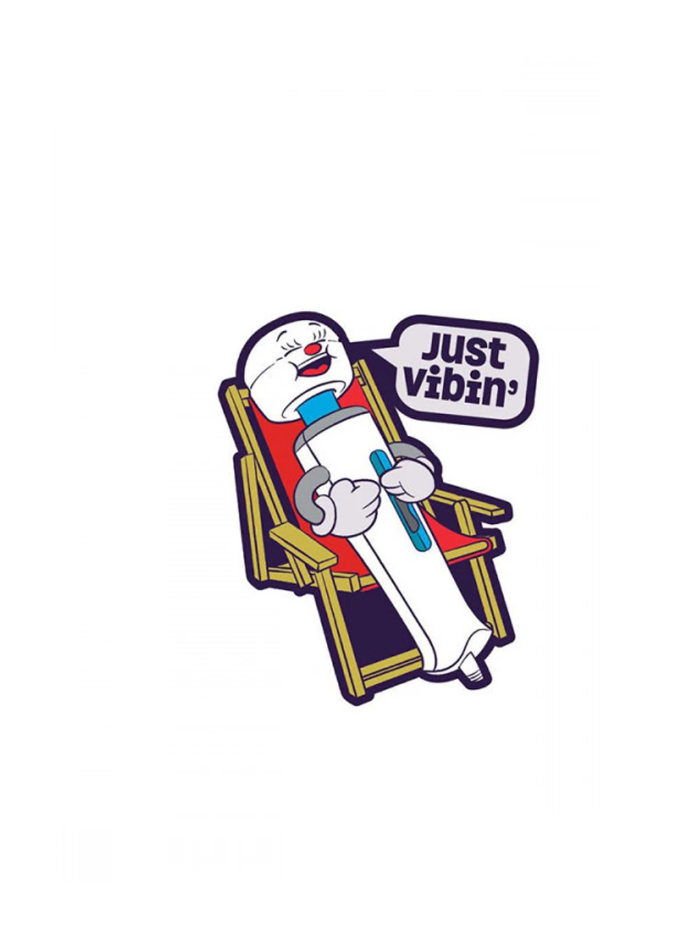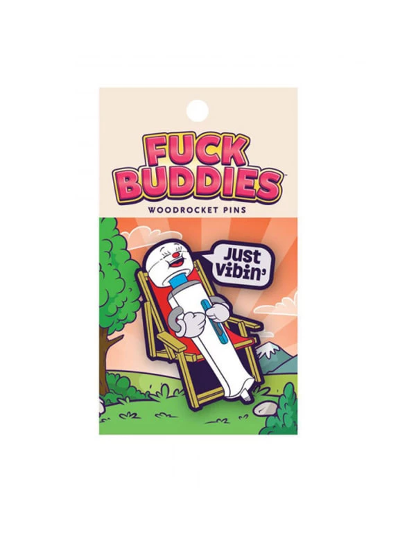 This funny and colorful soft enamel lapel pin by Wood Rocket is the perfect novelty apparel accessory. This adorable enamel pin features a wand vibrator saying “Just Vibin” and is one of Woodrocket’s silly and cute and filthy-mouthed sex toys in its Fuck Buddies Pin collection and is just the right amount of dirty to wear in public. Stick it on a hat or clothes or backpack or bag or purse it or give it as a gift!