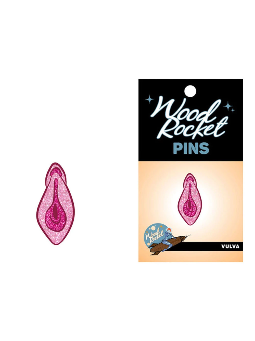 This large fun soft enamel glittery Vulva lapel pin by Wood Rocket is the perfect accessory. This pin has pink and white glitter and looks fantastic! Stick it on a hat or clothes or backpack or bag or purse it or give it as a gift.