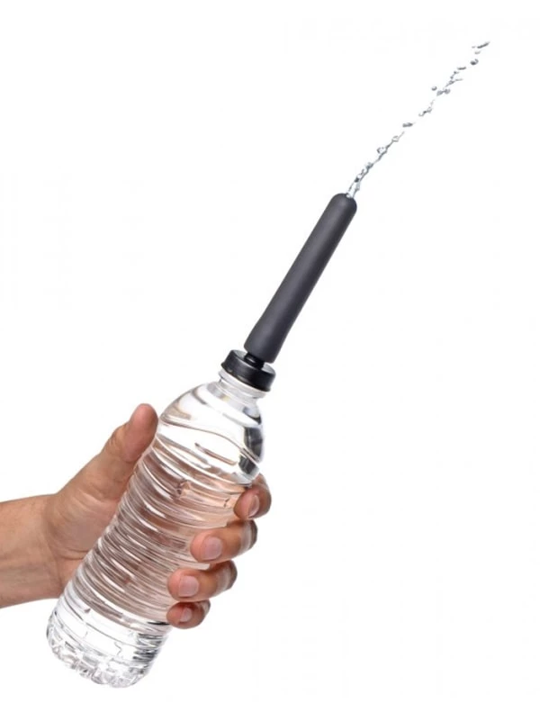 This genius 5-piece travel enema set lets you clean up or indulge in some kinky water play while on the go. The no-leak design lets you attach the nozzle–a contoured silicone tip with 5-hole spray–to a shower hose, if you have one handy, but if not, just use a large or small water bottle! The set comes with a 4” silicone nozzle and storage lid, small and large water bottle adapters, and a shower adapter; these adapters fit most standard water bottles and shower hoses.