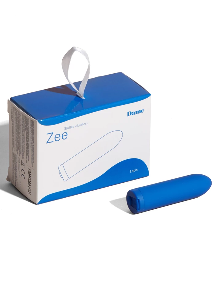 Dame’s Zee Bullet is the perfect compact travel companion! Small, simple and versatile, this three-speed rechargeable bullet vibe is soft to the touch, easy to use, powerful for its size, and makes a big impression. Its standard size means Zee fits in most harnesses, dildos, and cock rings–upgrade your battery-operated bullet with this rechargeable option! Let’s get back to basics: Zee’s three speeds–low, medium and high–are all controlled with a single, easy-to-use button. With a rounded tip that’s excellent for pinpoint vibration–just point it where it needs to go and let this strong little vibrator do the rest. This USB-rechargeable bullet likes to send clear signals. When charging, the light will blink while the power supply is filling up and will show a steady light when fully charged. Charge time for Zee is 30 minutes, yielding a 1 hour and 30-minute run time. The Zee bullet is water resistant, but we do not recommend submerging this toy. We suggest using a toy cleaner on this bullet, or a very mild soap with water.